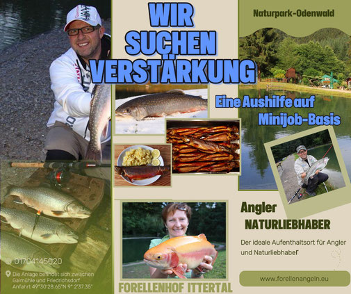 📍 Ort: Forellenhof Ittertal, 69412 Eberbach/Gaimühle. Bewerbung: Einfach per WhatsApp 0170 - 41 45 020 oder direkt vorbeikommen!